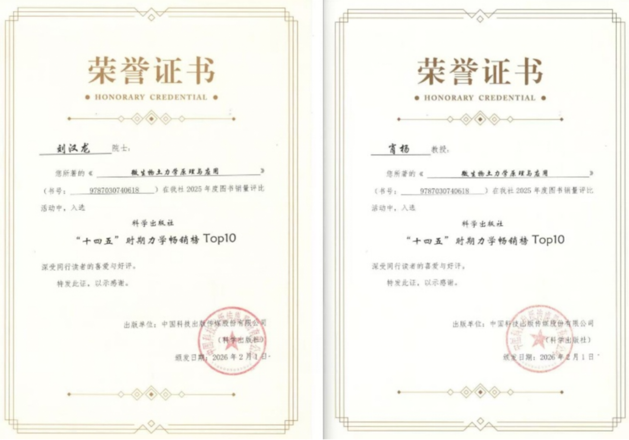 祝贺!《微生物土力学原理与应用》入选科学出版社“十四五”时期力学图书畅销榜Top10